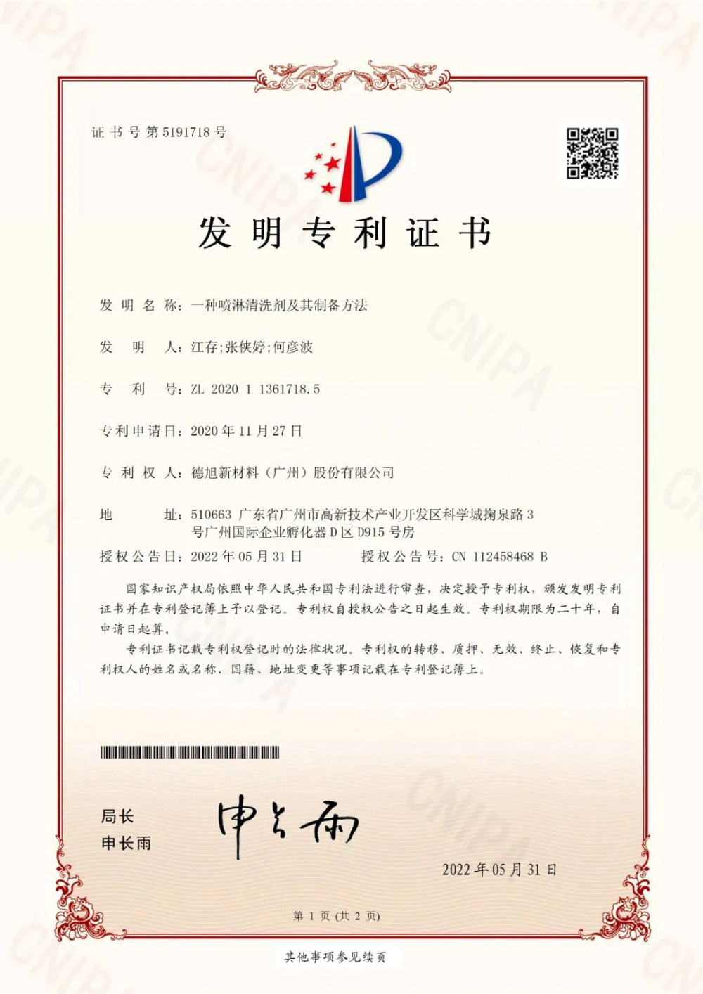 德旭新材料(广州)股份有限公司成立于2012年,坐落于国内新材料领域创新集聚区的广州高新技术产业开发区核心位置——广州科学城,是一家集研发、生产、销售于一体且拥有自主知识产权的专精特新企业。长期专注于金属材料的防腐蚀研究与创新,为汽车与船舶、航空航天、半导体及3C电子、新能源、水性防腐涂料等领域的金属防腐蚀提供产品和解决方案。同时也服务于工业润滑、金属表面处理、工业、商用和民用重油污清洗和益智玩具等行业。公司产品获得BASF(巴斯夫)、HP(惠普)、汉高、美泰、MOOSE、中国船舶、中国机械总院、安集、汇川、三环、晨光等国内外知名企业的青睐。
